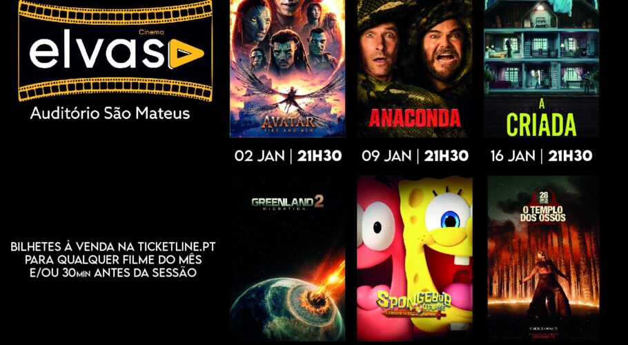 Cinema no Centro Cultural para o mês de janeiro. 10 de janeiro | 21:30H – Avatar: Fogo e Cinzas Bilhetes à venda no Centro Cultural e online em: https://tinyurl.com/cinemajaneirocm26
