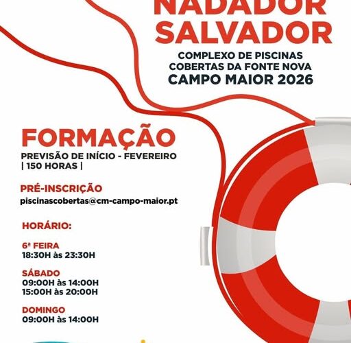 Curso de Nadador Salvador no Complexo de Piscinas Cobertas da Fonte Nova. Pré-Inscrições para o e-mail: piscinascobertas@cm-campo-maior.pt