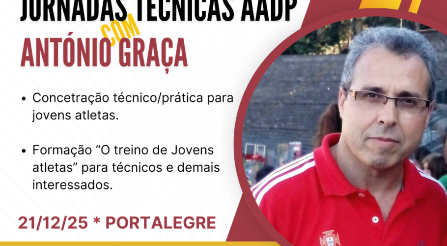 A Associação de Atletismo do Distrito de Portalegre (AADP) promove, no próximo dia 21 de dezembro de 2025, em Portalegre, as Jornadas Técnicas AADP, uma ação de formação gratuita e creditada com 1,2 unidades TPTD, orientada pelo professor António Graça. Dirigida a treinadores, atletas e público em geral,…
