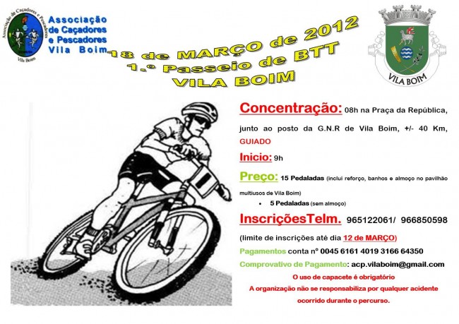 1º passeio de BTT de Vila Boim, uma organização da secção de cicloturismo da Associação de Caçadores e Pescadores de Vila Boim.