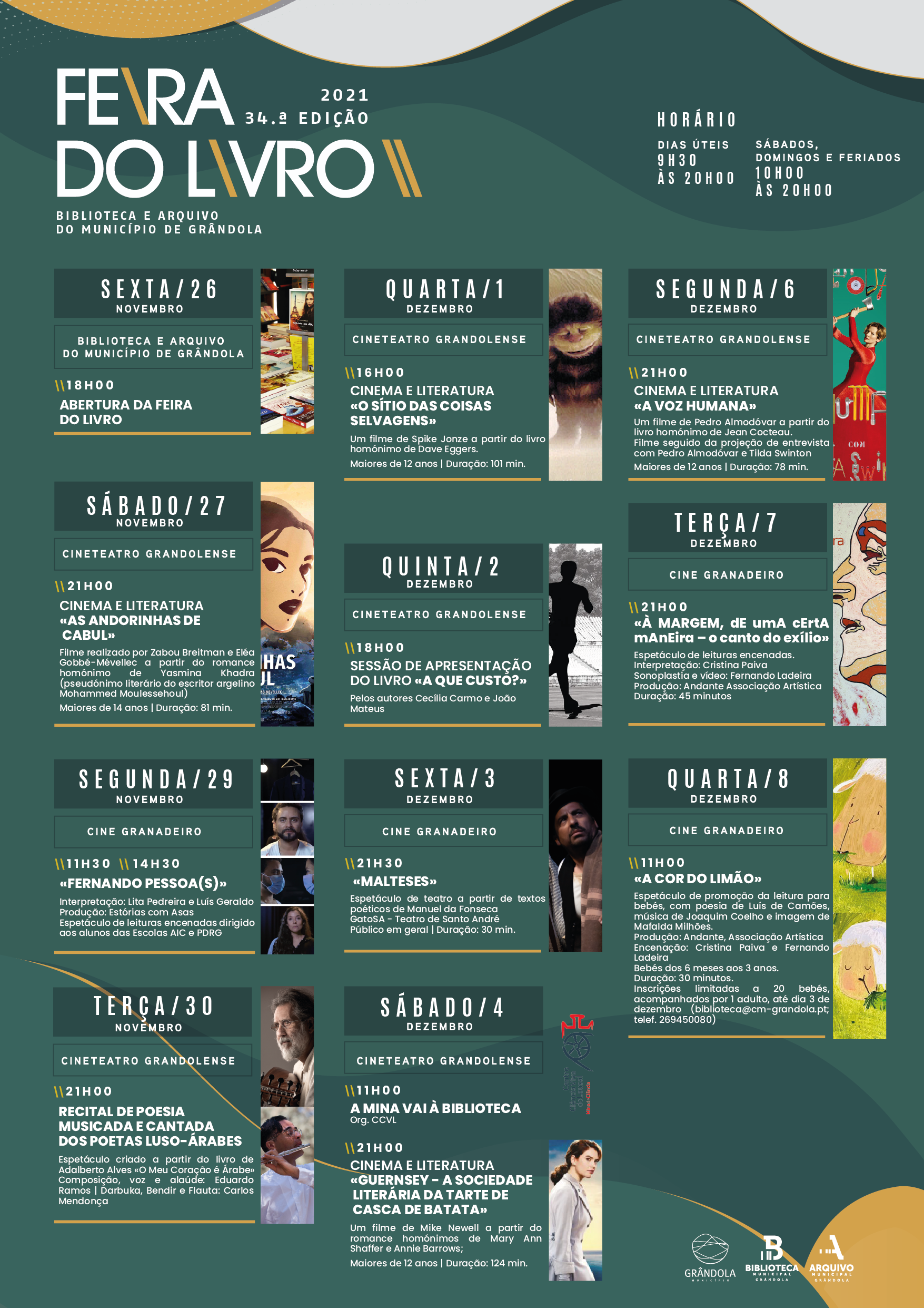 Até 8 de dezembro, a Feira do Livro, uma das principais iniciativas de âmbito cultural da Câmara Municipal de Grândola, pretende promover os livros e fomentar hábitos de leitura, apresentado aos visitantes propostas que vão dos clássicos da literatura às mais recentes novidades do universo das letras. O certame proporciona a aquisição de livros a preços especiais, com um “Fundo de Catálogo” – edições mais antigas de alguns títulos – a preços mais reduzidos.