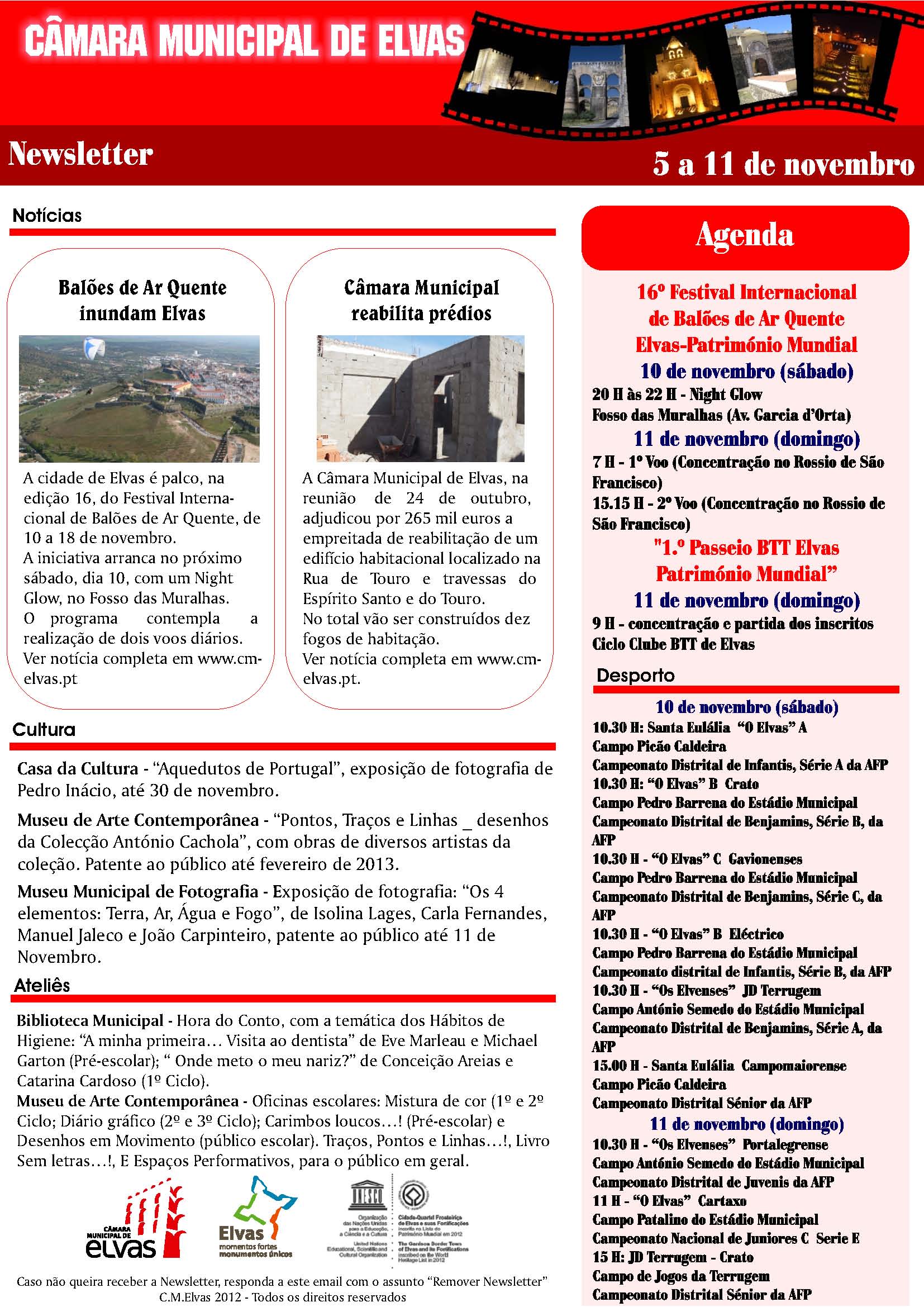 Agenda das Actividades Culturais de 5 a 11 de Novembro no Concelho de Elvas.