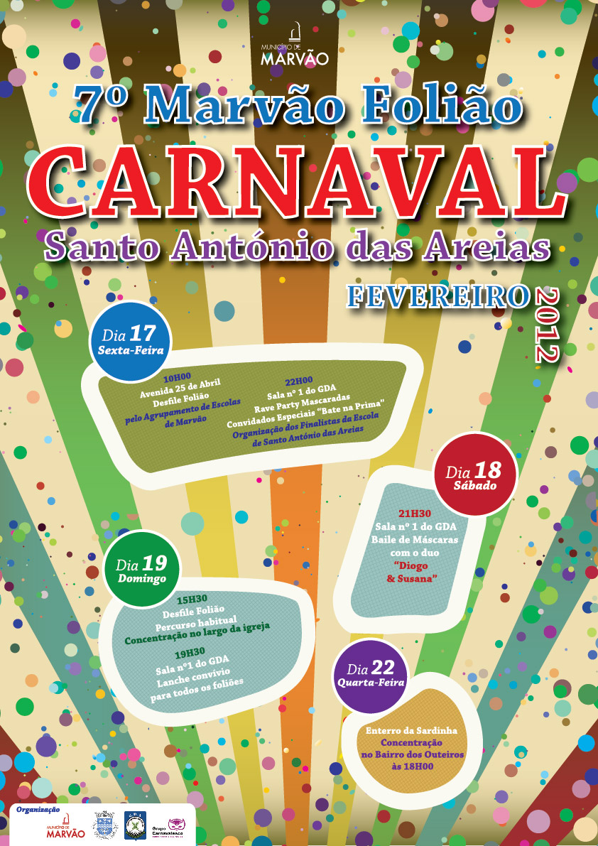 O Município de Marvão organiza a 7.ª edição do Marvão Folião, o  carnaval mais genuíno do Alentejo, em parceria com a Junta de Freguesia de Santo António das Areias, Casa do Povo de Santo António das Areias, Grupo Desportivo Arenense, Grupo Carnavalesco de Santo António e os Alunos Finalistas do Agrupamento de Escolas de Marvão.