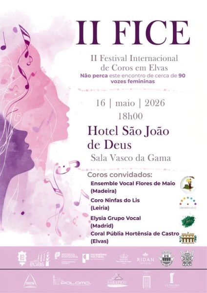 A Associação Cultural Públia Hortênsia de Castro, de Elvas, vai promover a 2.ª edição do Festival Internacional de Coros, que se realiza no próximo dia 16 de maio, pelas 18h00, na Sala Vasco da Gama do Hotel São João de Deus, com o apoio do Município de Elvas.