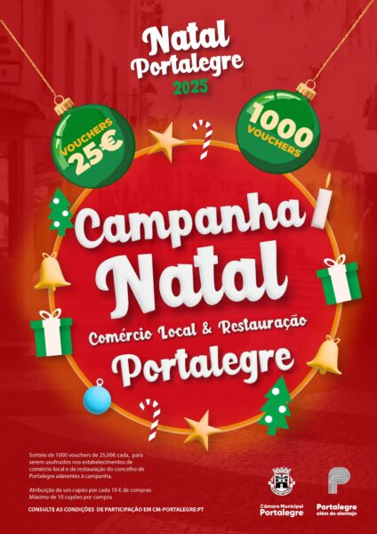 A Câmara Municipal de Portalegre promove, de 1 de dezembro de 2025 a 1 de janeiro de 2026, a “Campanha de Natal no Comércio Local & Restauração”, com o objetivo de revitalizar os hábitos de consumo no comércio tradicional, dinamizar a zona histórica e comercial, bem como, promover a oferta gastronómica enquanto meio de divulgação do concelho de Portalegre.