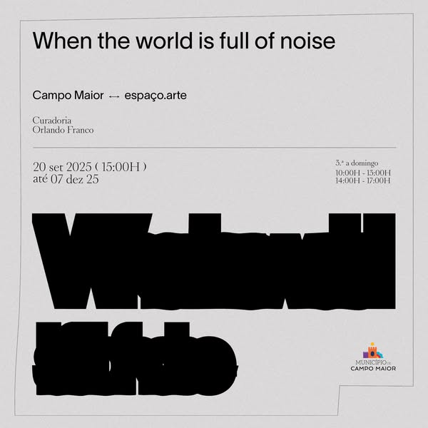 A exposição When the World is Full of Noise, com curadoria de Orlando Franco, apresenta-se no espaço.arte, em Campo Maior, e parte da ideia de que o ruído é inevitável e omnipresente, mas capaz de revelar camadas poéticas e sensíveis da experiência quotidiana.