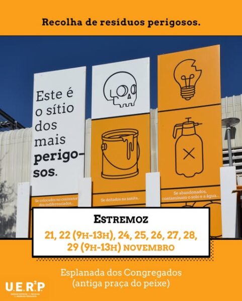 A Unidade especial de recolha de resíduos perigosos (UERRP) da Gesamb está de regresso a Estremoz na esplanada  dos congregados