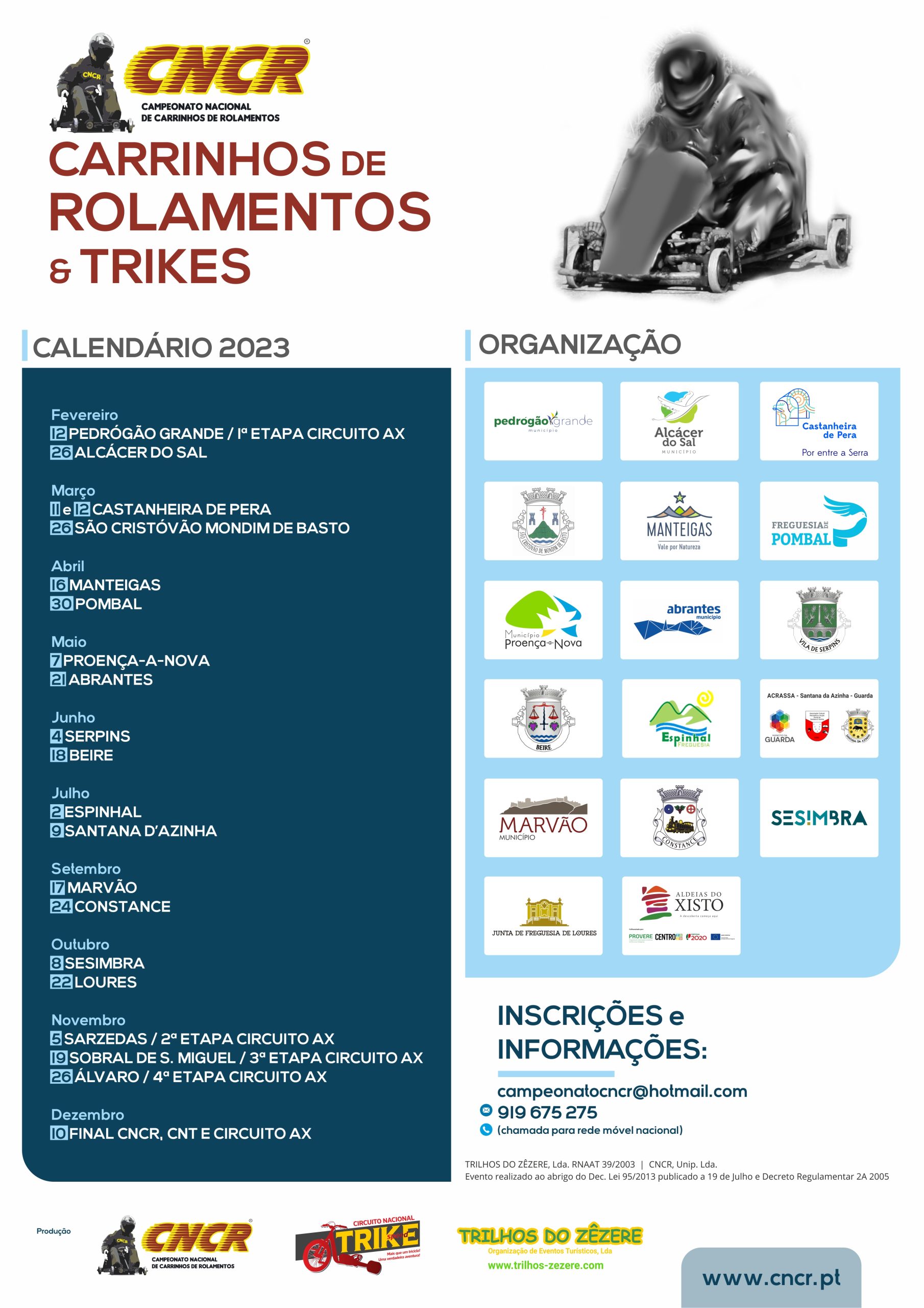 Inscrições e informações através do email campeonatocncr@hotmail.com e do número 919 675 275. Regulamento disponível em www.cncr.pt.