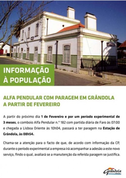 Alfa Pendular com paragem em Grândola a partir de Fevereiro