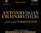 António Chainho, o mestre da guitarra portuguesa, vai estrear o novo espetáculo no dia 28 de janeiro, pelas 21h30, no Auditório Municipal de Reguengos de Monsaraz. António Chainho vai estar acompanhado em palco por Ciro Bertini (baixo acústico), Miguel Silva (viola de fado) e pelo quarteto de cordas Naked Lunch, que também colabora ao vivo com Sam the Kid e Orelha Negra.