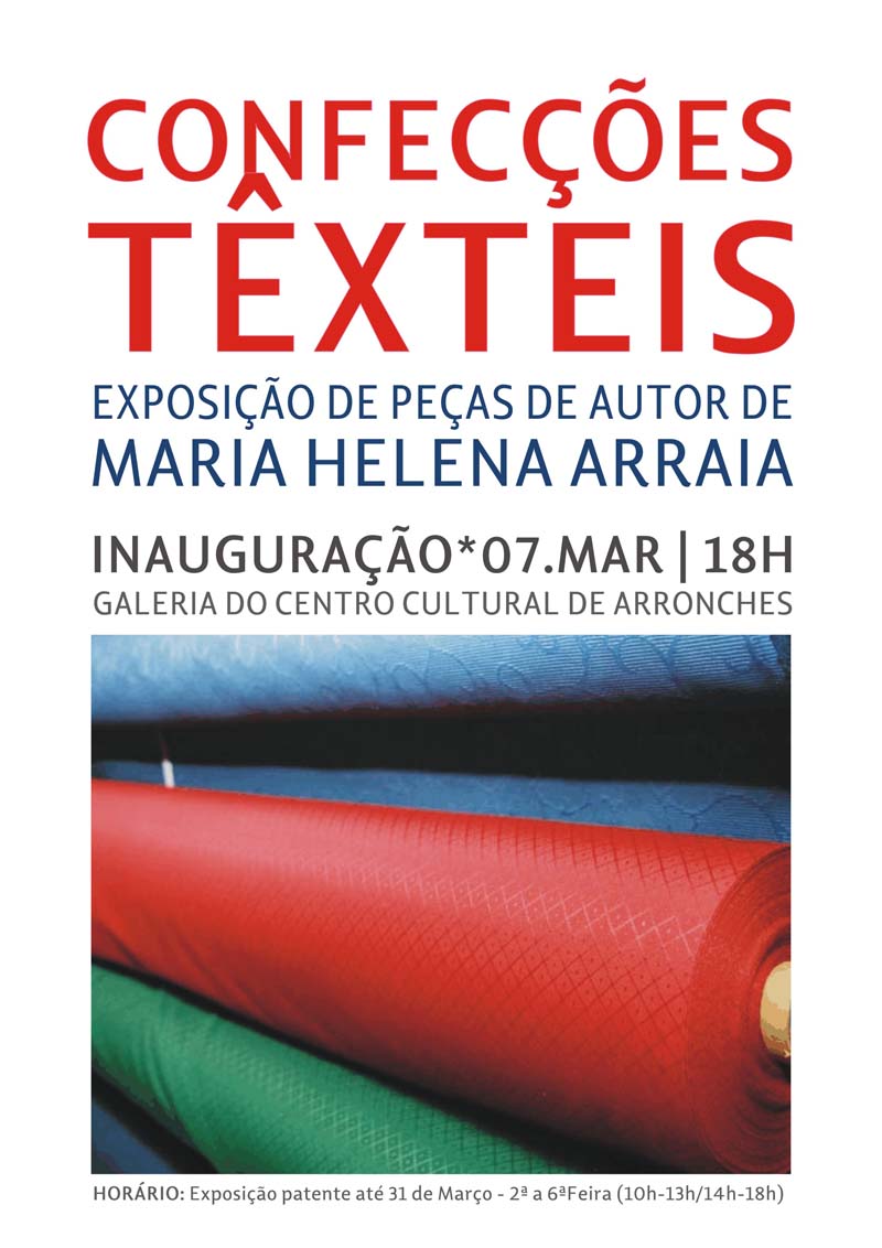 Vai ser inaugurada dia 7 de Março na Galeria do Centro Cultural de Arronches a Exposição Confecções Têxteis, de Maria Helena Arraia.
