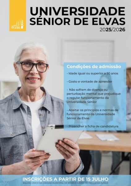 As inscrições para a Universidade Sénior encontram-se abertas para o ano letivo 2025/2026.