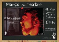 O Março em Teatro continua esta semana com mais uma série de actividades à volta do tema do teatro. O destaque desta semana vai para o espectáculo “O Rei Imaginário ou a ausência de Deus”, pela companhia Varazim Teatro, no dia 12 na Casa da Cultura, com início marcado para as 21h30. No dia anterior (dia 11) às 18h30, a Lendias d’Encantar vai participar nas “Conversas com B de Beja”, na Biblioteca Municipal José Saramago. Durante o fim-de-semana continuam os ateliers, iniciados na semana anterior, para crianças (dia 12) e jovens (dia 13), enquanto que nos dias 14, 16 e 18 irá decorrer o atelier para adultos, na Casa da Cultura às 21h30.