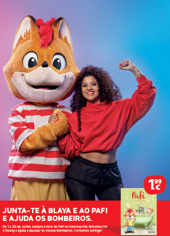 | «Pafi ensina a poupar água» está à venda por 1,99€, de 1 a 30 de junho, em todas as 320 lojas Intermarché, Bricomarché e Roady, insígnias do Grupo Os Mosqueteiros. No próximo dia 13 de junho entre o 12h30 e as 14h a Blaya e o alegre e ágil raposinho Pafi vão estar no auditório da Feira do Livro de Lisboa a promover o livro infantil no qual o Pafi ensina alguns valores ambientais, nomeadamente a importância de preservar os recursos hídricos, essenciais a sobrevivência do planeta. |