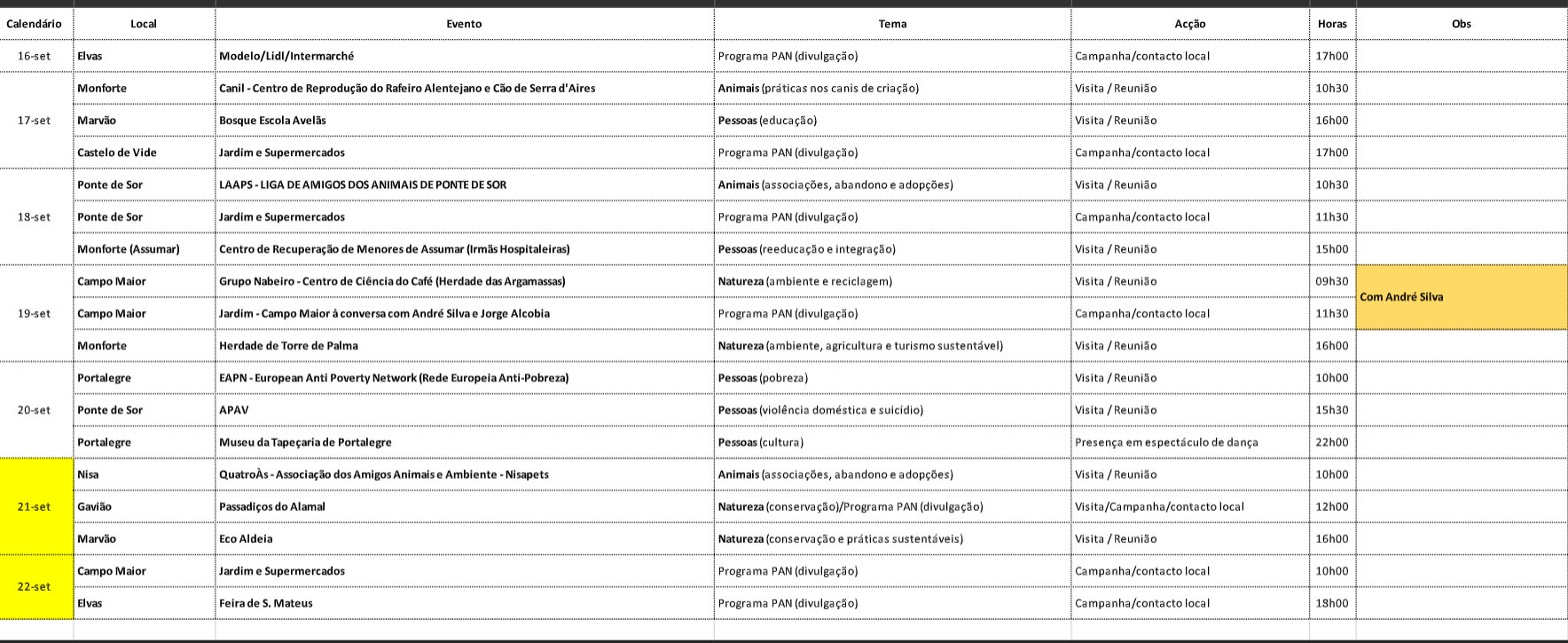 Calendário – Acções de Campanha PAN Círculo Eleitoral de Portalegre