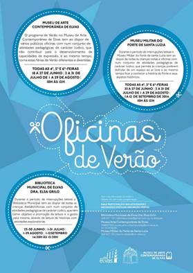 A Câmara Municipal de Elvas realiza durante a época de verão mais de 50 ateliês/oficinas, distribuídas entre a Biblioteca Municipal Dra. Elsa Grilo, o Museu de Arte Contemporânea e o Museu Militar do Forte de Santa Luzia, que prometem manter ocupadas e divertidas todas as crianças que se inscreverem.