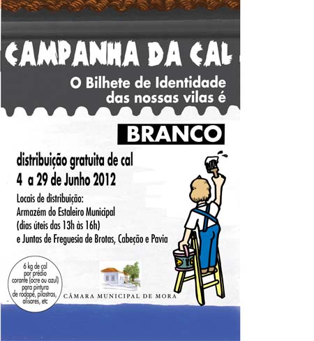 Vigorando até 29 de Junho, a entrega de cal é feita os estaleiros municipais da autarquia em Mora (dias úteis, 13H-16H) e nas juntas de freguesia de Pavia, Cabeção e Brotas