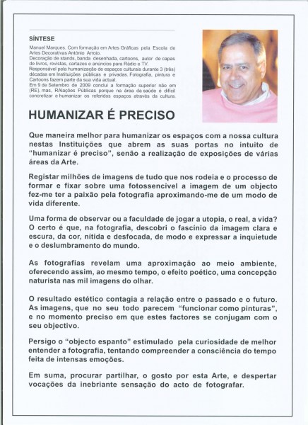 Intitulada “Humanizar é Preciso” a mostra fotográfica é da autoria de Manuel Marques.