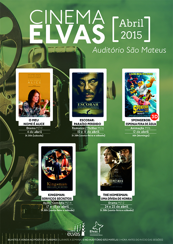 O melhor cinema, numa aposta da Câmara Municipal de Elvas, para ver em abril no Auditório São Mateus. Bilhetes à venda no Posto de Turismo, durante a semana, e uma hora antes das sessões no Auditório São Mateus.