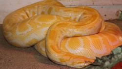 Trata-se de um macho de Cobra Pitão Albina com cerca de 2,50 metros, uma espécie não venenosa e que mata as presas por asfixia, alimentando-se de ratos, coelhos e mamíferos de pequeno porte. Pode viver até aos 40 anos e atingir 8m de comprimento. O exemplar encontrou no Monte Selvagem um habitat alternativo de refúgio e bem-estar.