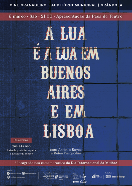 “A Lua é a Lua em Buenos Aires e em Lisboa” é uma coprodução internacional entre Portugal e Argentina, com interpretações dos conceituados Belén Pasqualini e António Revez, que será apresentada em Grândola, no dia 5 de março, às 21h00, no Cine Granadeiro — Auditório Municipal.