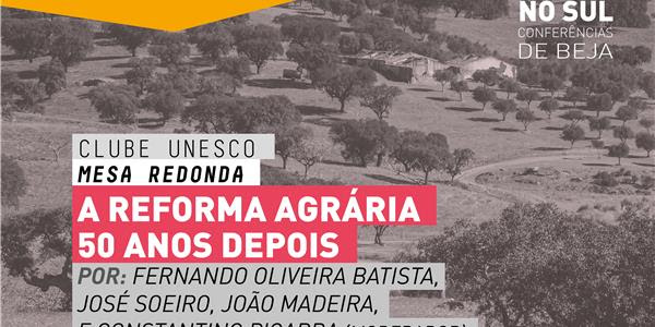 No âmbito do ciclo “Terra e Paisagens no Sul – Conferências de Beja”, realiza-se no próximo dia 6 de novembro, às 21h00, no Clube UNESCO de Beja, a mesa-redonda “A Reforma Agrária: 50 Anos Depois”. Cinquenta anos volvidos sobre o início da Reforma Agrária, este encontro pretende promover uma reflexão serena e fundamentada sobre um dos acontecimentos mais marcantes da nossa história recente, com testemunhos e análises de protagonistas e investigadores que viveram e estudaram o processo. A sessão contará com a participação de: