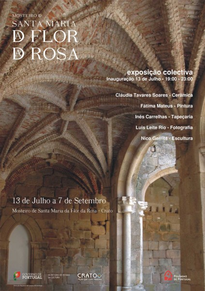 O Presidente da Câmara Municipal do Crato e a Diretora Regional de Cultura do Alentejo inauguram, a 13 de Julho de 2012 (sexta-feira), pelas 19h, no Mosteiro de Santa Maria de Flor da Rosa, a exposição coletiva FLOR DA ROSA que reúne trabalhos de Cláudia Tavares Soares – Cerâmica, Fátima Mateus – Pintura, Inês Carrelhas – Tapeçaria, Luís Leite Rio – Fotografia e Nico Gerrits – Escultura.