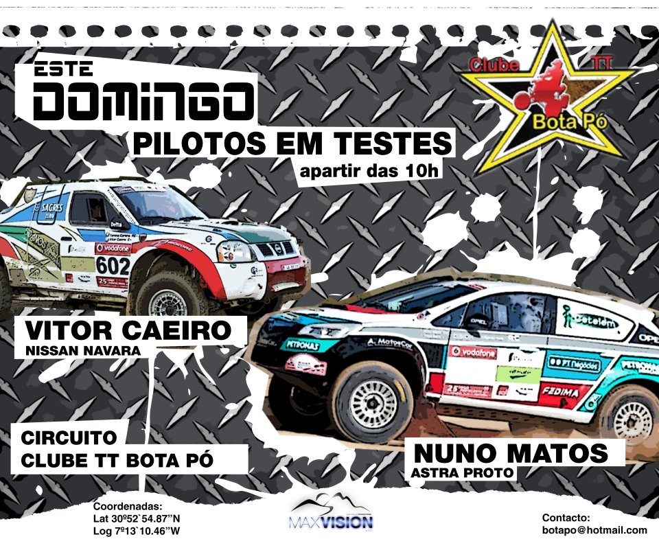 domingo da parte da tarde na Pista “Bota Po” em Calçadinha (Elvas) . A não perder esta grande oportunidade de assistir ao desempenho de máquinas e pilotos de âmbito nacional.