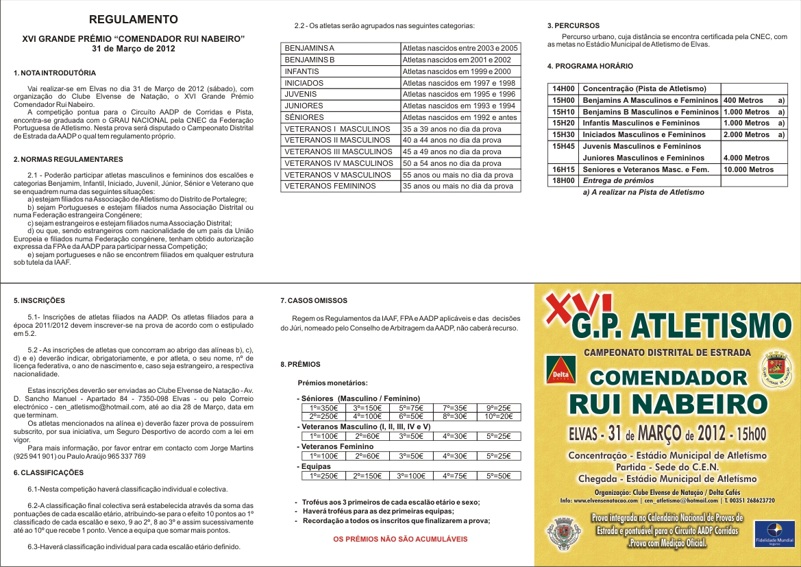 O XVI, Grande Prémio de Atletismo “Comendador Rui Nabeiro” organizado pela Associação de Atletismo de Portalegre e pelo Clube Elvense de Natação, vai decorrer em Elvas a 31 de Março de 2012.