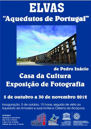 A mostra, de Pedro Inácio, é inaugurada a 5 de outubro, pelas 15 horas, e apresenta fotografias de duas dezenas de aquedutos, entre as quais o Aqueduto da Amoreira. Logo após a inauguração acontece uma visita ao Aqueduto da Amoreira e suas fontes e Cisterna de Alcáçova.