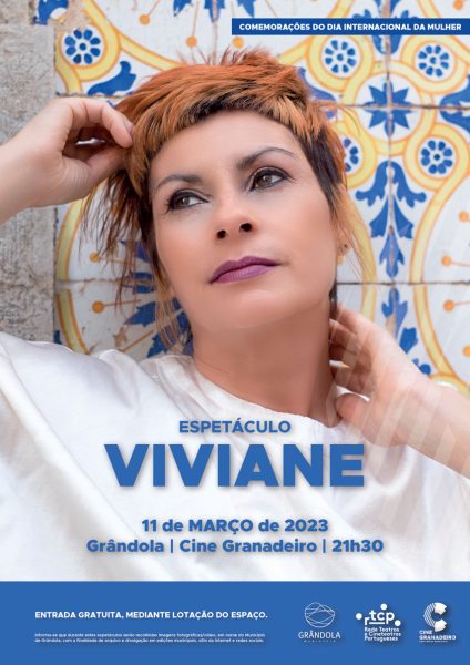 O espetáculo com Viviane, a conhecida vocalista do grupo “Entre Aspas”, no dia 11 de março, pelas 21h30 no Cine Granadeiro, é o destaque do programa das Comemorações do Dia Internacional da Mulher em Grândola.