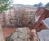 Uma retroescavadora, que seria de uma empresa que opera numa das pedreiras da zona, também foi arrastada para o interior da pedreira e estima-se que há pelo menos cinco vítimas mortais resultantes desta tragédia e se encontram neste momento a cerca de 50 metros de profundidade.
