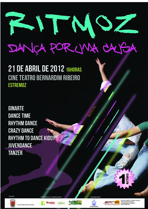 O festival “RITMOZ – Dança por uma causa” é o tema do evento a realizar-se no próximo sábado, dia 21 de abril, pelas 16horas, no Cine Teatro Bernadim Ribeiro, em Estremoz. O evento reune em palco sete grupos de dança oriundos dos concelhos de Aviz, Borba, Estremoz e Sousel. Ginarte, Crazy Dance, Dance Time, Rhythm Dance, Rhythm to Dance Kiddy, Tanzer, Juvendance são os grupos que vão apresentar vários tipos de dança que vão desde o hip hop ao salsa.