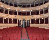 com um palco à italiana e uma impressionante maquinaria de estilo barroco, ainda em funcionamento, construída
