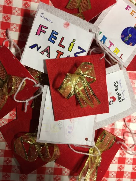 No dia de ontem, para alem de alguns jogos e brincadeiras, as crianças elaboraram um Postal de Natal para oferecer as crianças do Centro de Acolhimento – Os Cucos, que nos receberam calorosamente na sua festa de Natal.