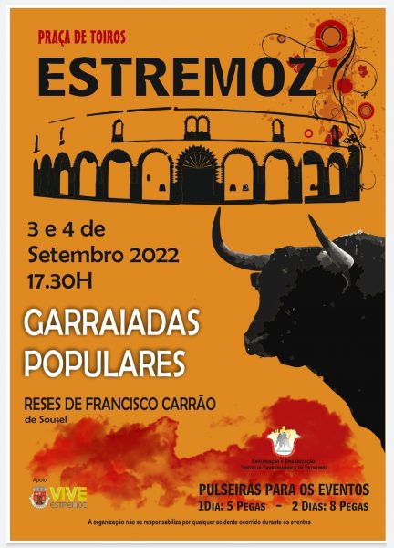 semana em que se realizam as Festas da Exaltação da Santa Cruz, as tradicionais Festas da Cidade de Estremoz, a TTE – Tertúlia Tauromáquica de Estremoz organiza na Praça de Touros de Estremoz, duas garraiadas populares. Com reses de Francisco Carrão, de Sousel, as garraiadas realizam-se nos dias 3 e 4 de Setembro, sábado e domingo, pelas 17:30 horas. Esta iniciativa, que conta com o apoio da Câmara Municipal de Estremoz, tem também a sua vertente solidária, visto que as receitas das duas garraiadas revertem a favor dos Bombeiros Voluntários de Estremoz, da CERCIEstremoz e do Clube Futebol de Estremoz. As pulseiras para assistir a estas garraiadas solidárias têm o custo de 8 euros, para as duas garraiadas, e de 5 euros por cada garraiada.