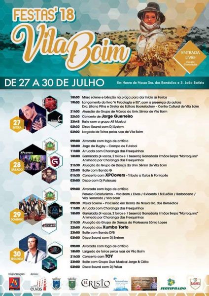 A associação Aboim Jovem volta a organizar as festas de verão de Vila Boim 2018, será de 27 a 30 de Julho com entradas livres para os espetáculos musicais
