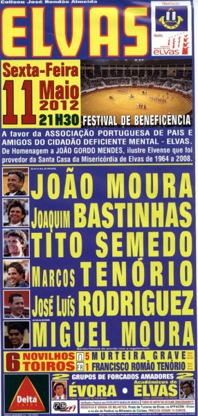 Vai decorrer no Coliseu José Rondão Almeida em Elvas, o Festival Taurino de Beneficência a favor da APPACDM .