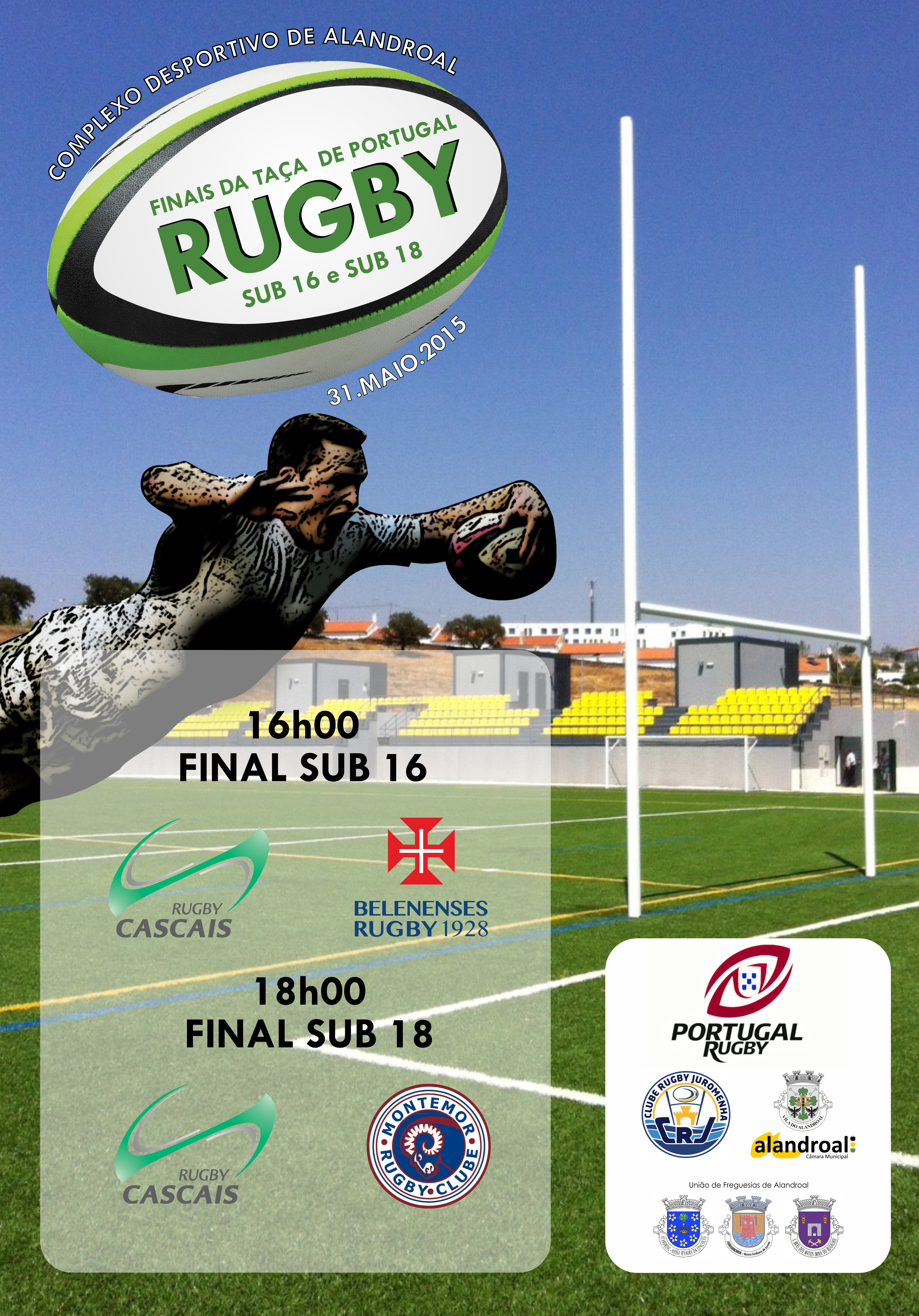 As finais da Taça de Portugal de Rugby nos escalões sub 16 e sub 18, realizam-se no Complexo Desportivo de Alandroal, no próximo dia 31 de Maio.