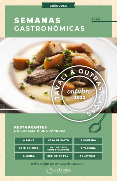 O município de Grândola promove, em outubro, mais uma edição das Semanas Gastronómicas. No mês em que se comemoram os 478 anos do Dia do Concelho, será possível saborear à mesa de nove restaurantes, javali e outras caças.