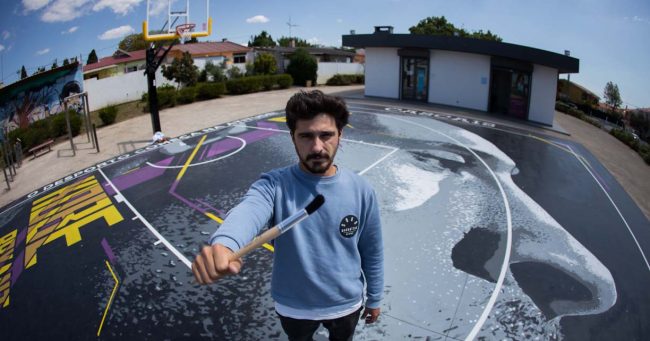 O artista OATS é um jovem de Cascais e já tem no seu currículo 4 outros trabalhos feitos no âmbito da medida da FPB 3×3 BASKETART.