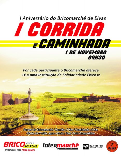Para comemorar o primeiro Aniversário em Elvas o Bricomarché em parceria com a Associação IALBAX e com a Loja Intermarché vai organizar o primeiro “Treino de Corrida e Caminhada – I Aniversário Bricomarché de Elvas”.