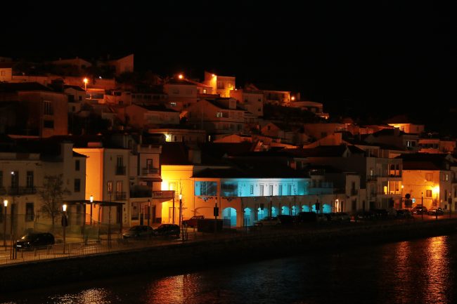Iluminação azul na Biblioteca Municipal de Alcácer do Sal