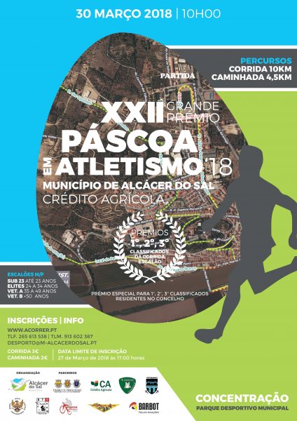 Já se encontram abertas as inscrições para o XXII Grande Prémio da Páscoa em Atletismo, que se realiza na cidade de Alcácer do Sal, no dia 30 de março.