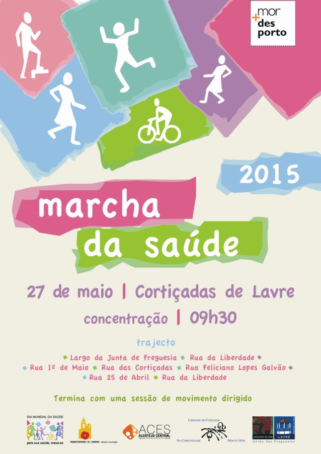 Dia 27 de Maio em Cortiçadas de Lavre, concelho de Montemor-o-Novo, irá realizar-se uma marcha da saúde. A concentração será as 09h30 e terminará com uma sessão de movimento dirigido.