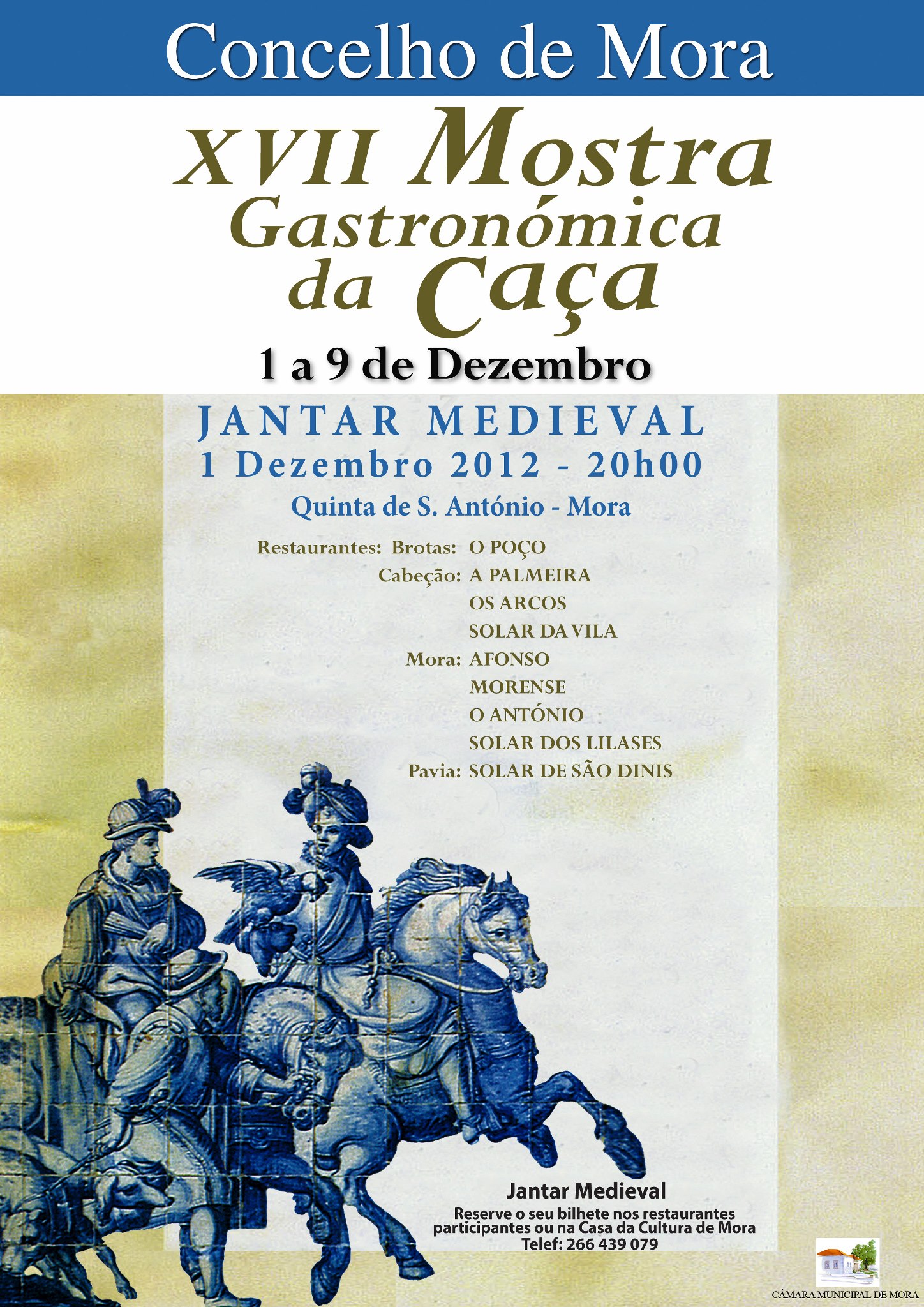 O melhor da Gastronomia de Caça alentejana pode ser degustado em Mora, durante a XVI Mostra Gastronómica de Caça a partir de 1 de Dezembro em nove restaurantes do concelho .apresentando mais de 40 receitas.