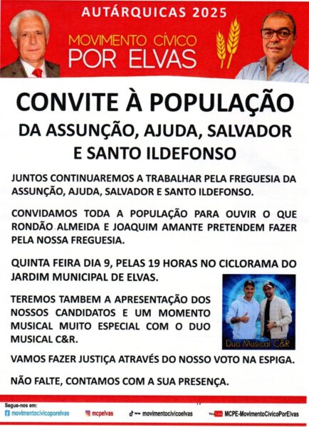 Embora Rondão Almeida esteja impossibilitado de se candidatar diretamente a esta freguesia, o candidato reafirma o seu empenho em assegurar mais quatro anos de governação na Câmara Municipal de Elvas, caso os eleitores assim o decidam.