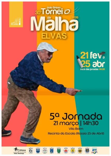 O 30º Torneio da Malha do Concelho de Elvas “João Brioso” prossegue este sábado, dia 21, pelas 14h30, em Vila Boim, no recinto da Escola no Rossio 25 de abril.
