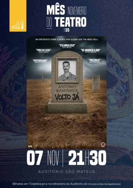 O mês de novembro é dedicado ao teatro e esta sexta-feira, pelas 21h30, o Auditório São Mateus acolhe a peça “António Raminhos – Volto Já”.