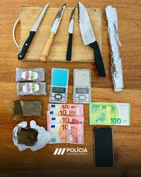 O suspeito foi intercetado na posse de 99 doses individuais de haxixe, o qual lhe foi apreendido e a importância de € 140,00 em notas do Banco Central Europeu, que, por suspeitas de ter origem na atividade ilícita, foram igualmente apreendidos.